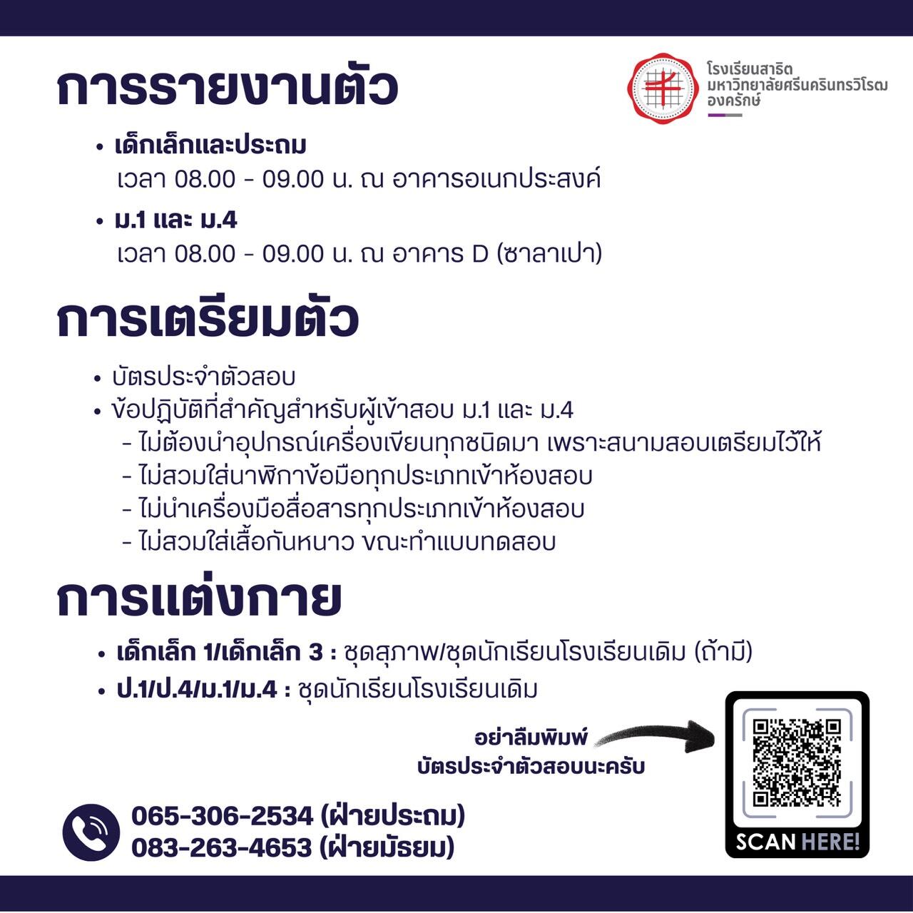 🔻ประกาศรายชื่อผู้มีสิทธิ์เข้าประเมินความพร้อม ปีการศึกษา 2569 (รอบ 2) โรงเรียนสาธิต มศว องครักษ์