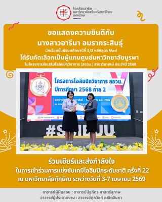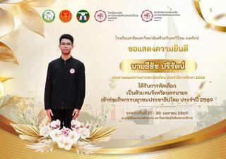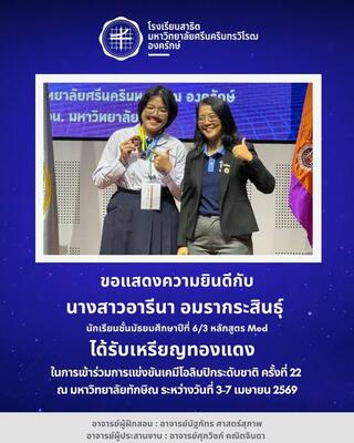 เหรียญทอง 🥇 ด้วยคะแนน 98/100 รายวิชา ความถนัดทางเศรษฐศาสตร์ ได้รับการคัดเลือกเป็นตัวแทนภูมิภาค ผ่านเข้าสู่การแข่งขันรอบประเทศ ในเดือนมิถุนายน 2569 ณ สถาบันเทคโนโลยีพระจอมเกล้าเจ้าคุณทหารลาดกระบัง