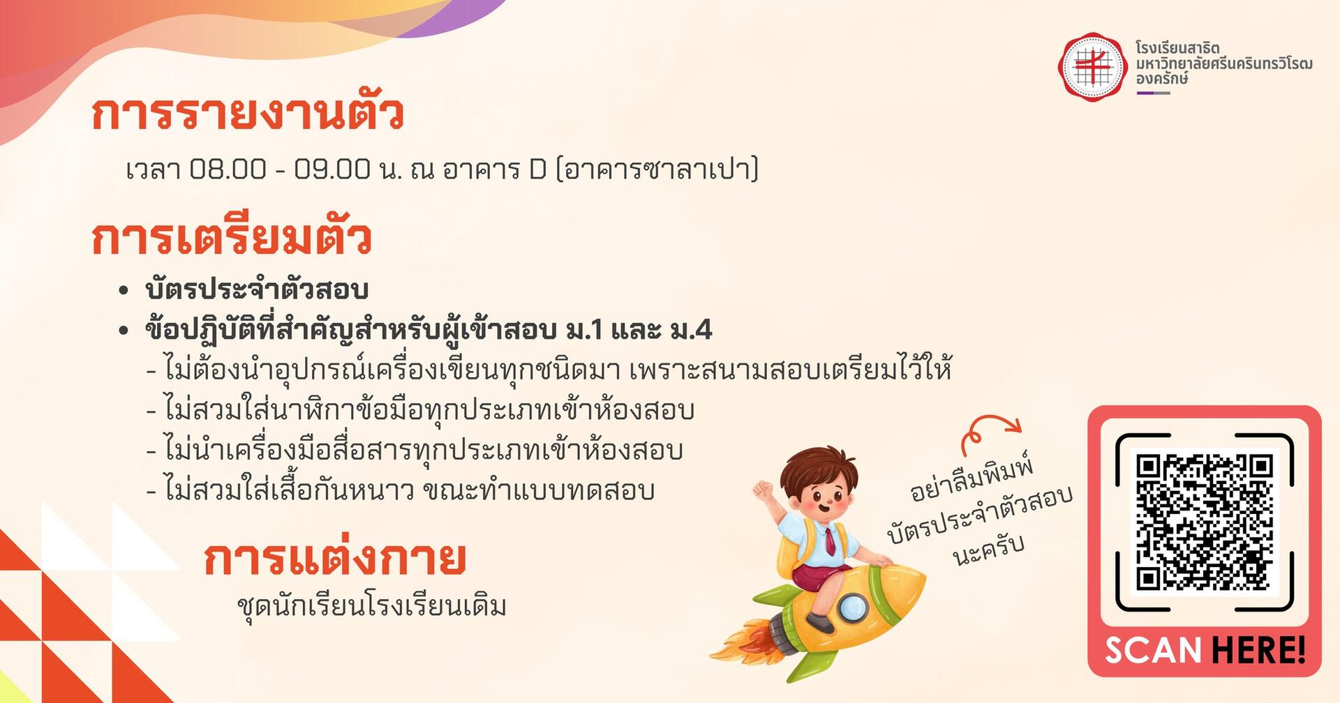 📌โครงการทดสอบความรู้พื้นฐานของผู้เรียน ประจำปี 2569 (Pre-test 2026) โรงเรียนสาธิต มศว องครักษ์